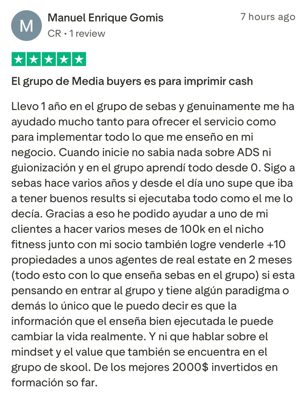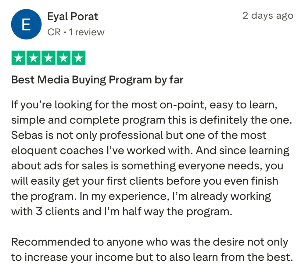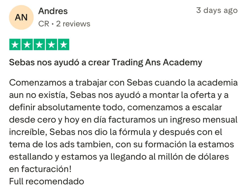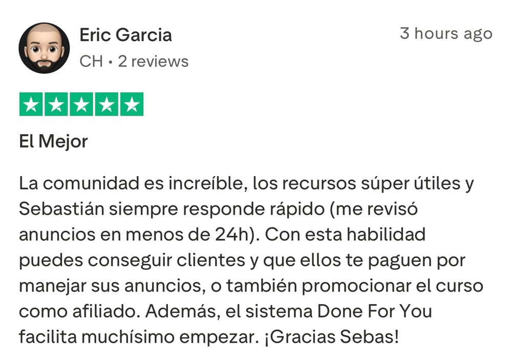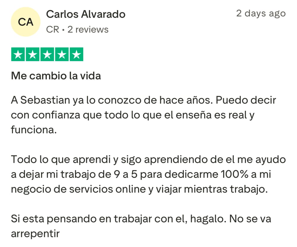 Si le interesa unirse al grupo de Media Buyers, y trabajar directamente con Sebastián para iniciar su transformación, y ayudarlo a generar $3,000/mes recurrentes en los próximos 90 días como Media Buyer, llene el formulario para aplicar (sólo para gente seria que no hace excusas y esta lista para hacer el trabajo necesario).